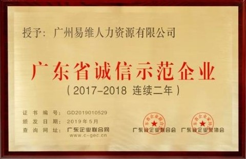 | 2 | 2019年廣東省人力資源誠信服務示范機構 | 廣東省人力資源和社會保障廳 | 全省評選50家 |